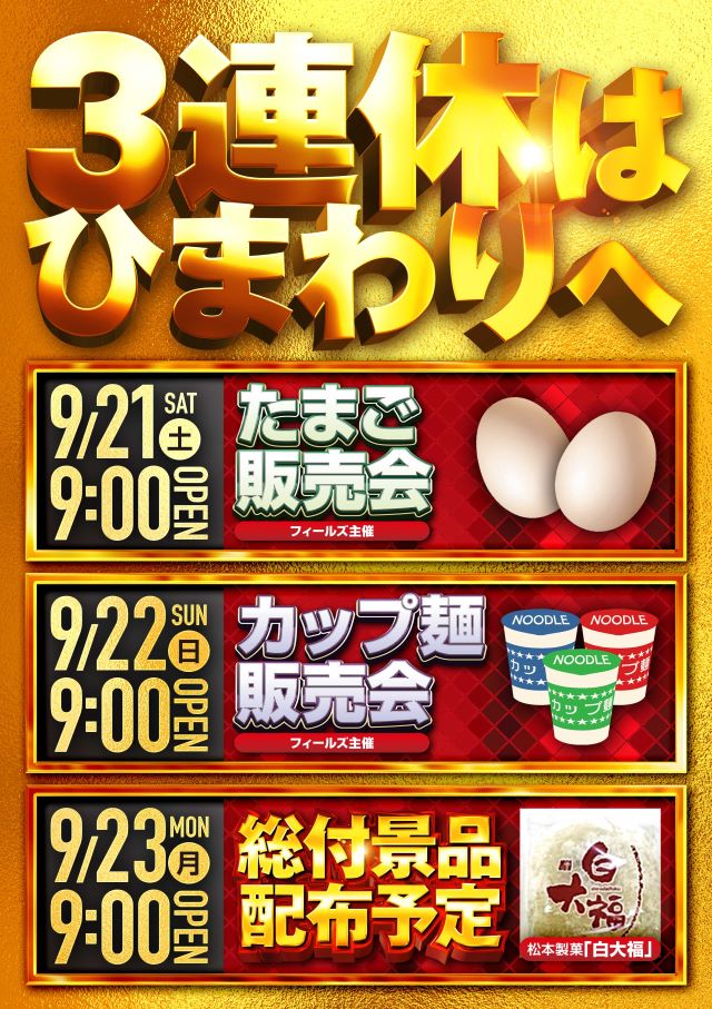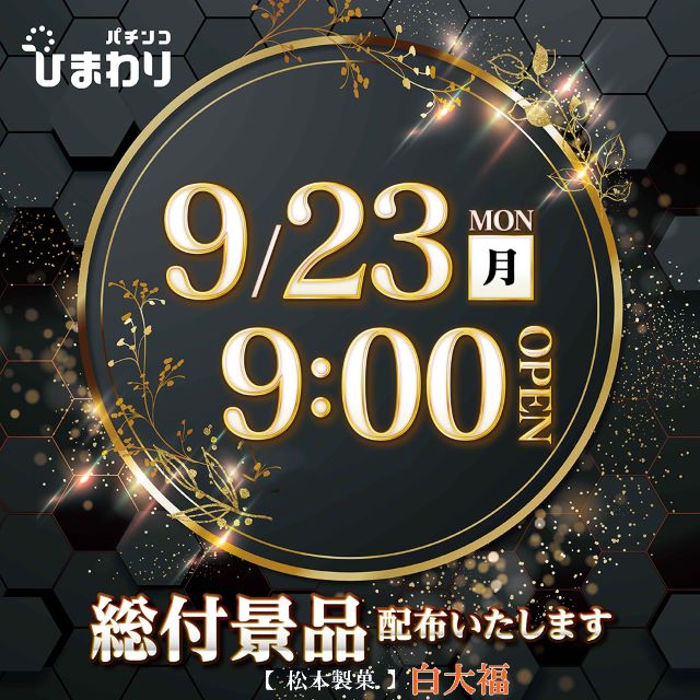 9月23日(月)9時開店!☆総付景品配布予定☆
