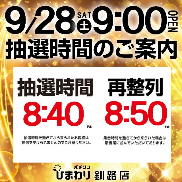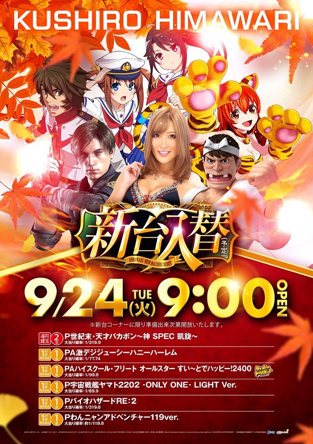 9月24日(火)9時00分開店!新台入替予定!