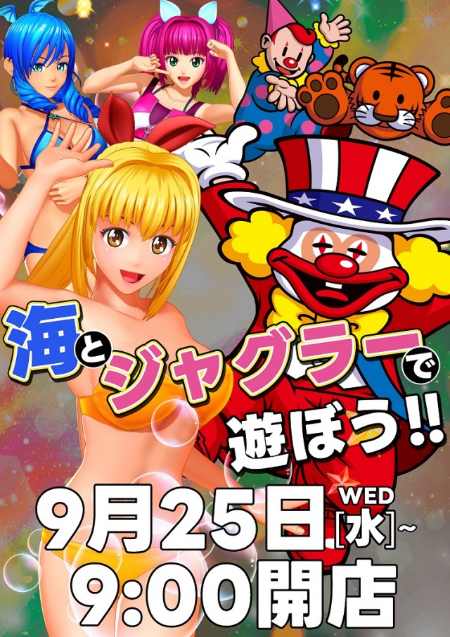 9月25日(水)9時00分開店!海とジャグラーで遊ぼう!!