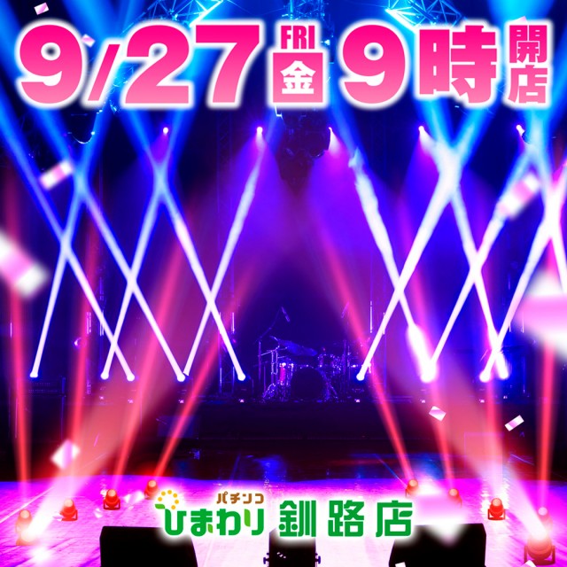 9月27日 (金) 9時開店!スロットコーナー 一部時差開放