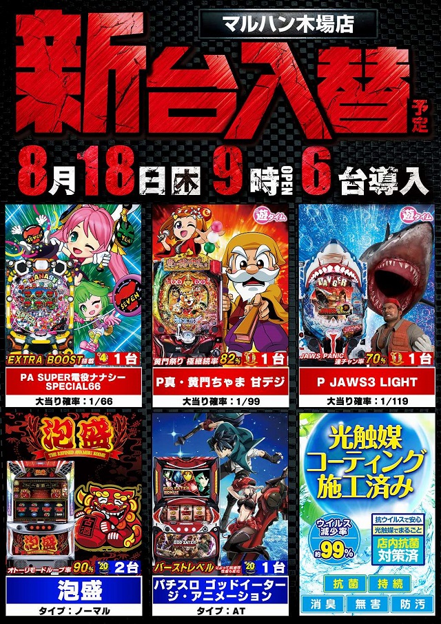 8月18日(木) 新台入替×朝9時開店