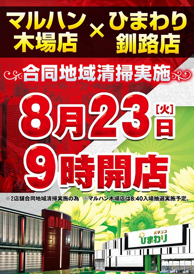 23日(火)朝9時開店×ひまわり様合同地域清掃