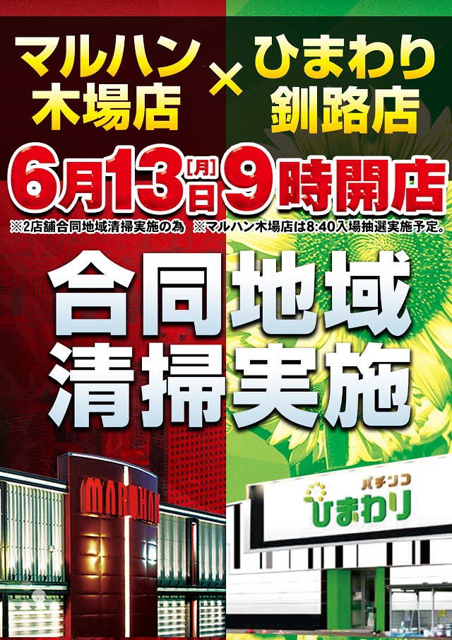 釧路マルハン合同メンテナンス実施‼ 18日(土)10時開店