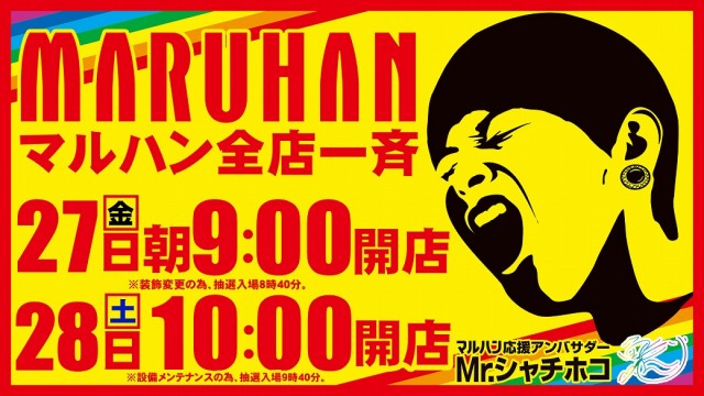 北海道マルハン全店一斉 5月27日朝9時開店 ※装飾変更の為