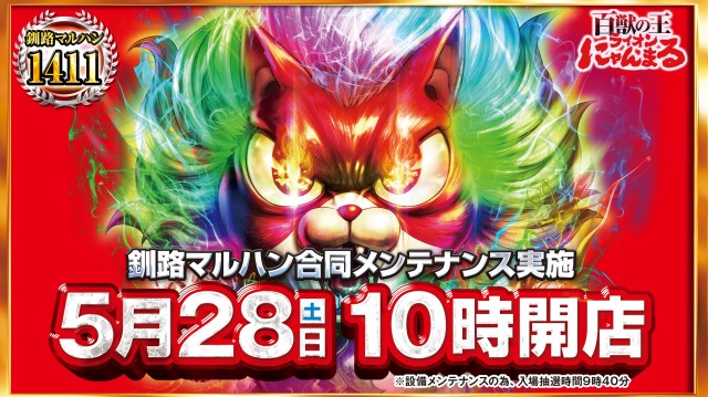 釧路マルハン合同メンテナンス‼ 28日(土)10時開店