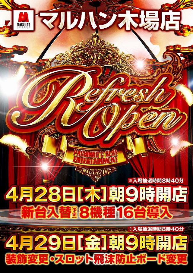 マルハン全店一斉4月17日(日)朝9時開店 ※装飾変更の為