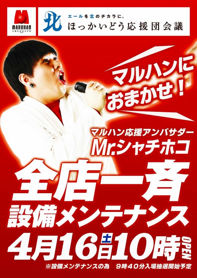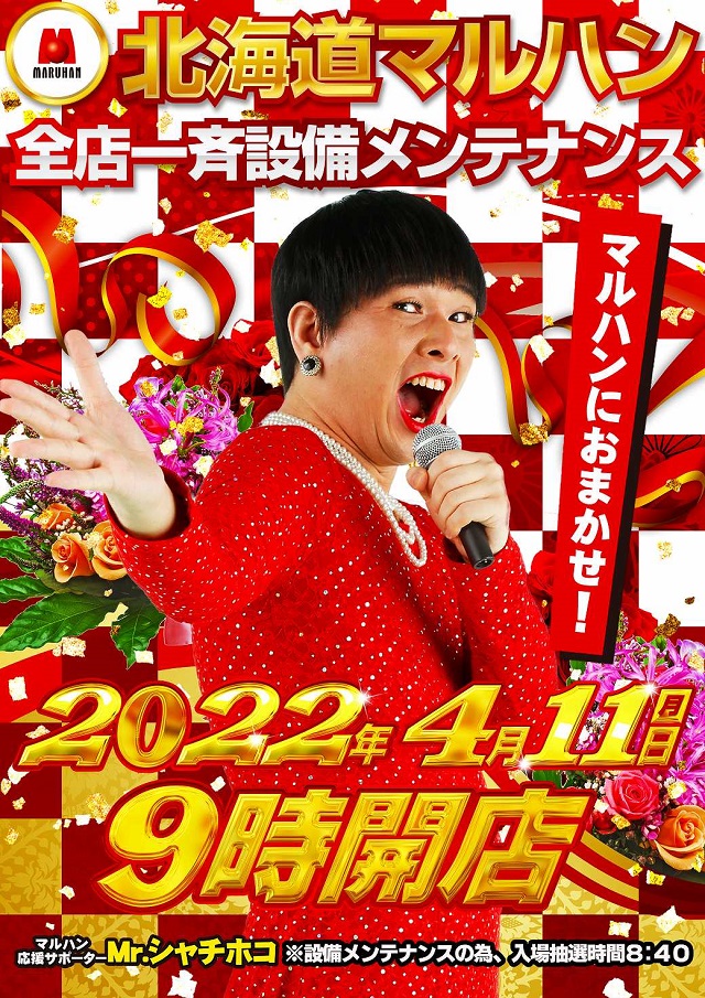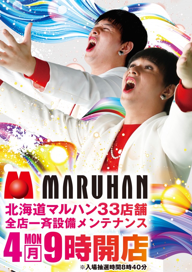 北海道マルハン全店一斉設備メンテナンス4日(月)朝9時開店!