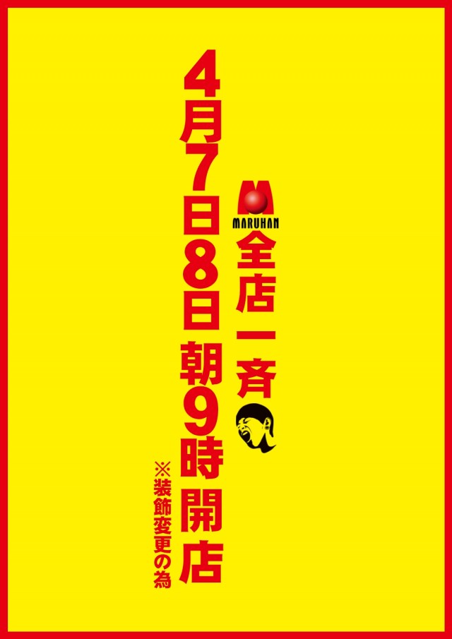 マルハン全店一斉4月17日(日)朝9時開店 ※装飾変更の為