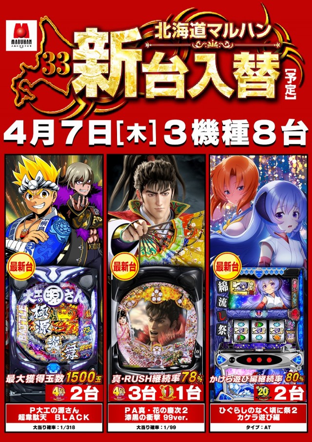 4月11日 北海道マルハン全店一斉設備メンテナンス