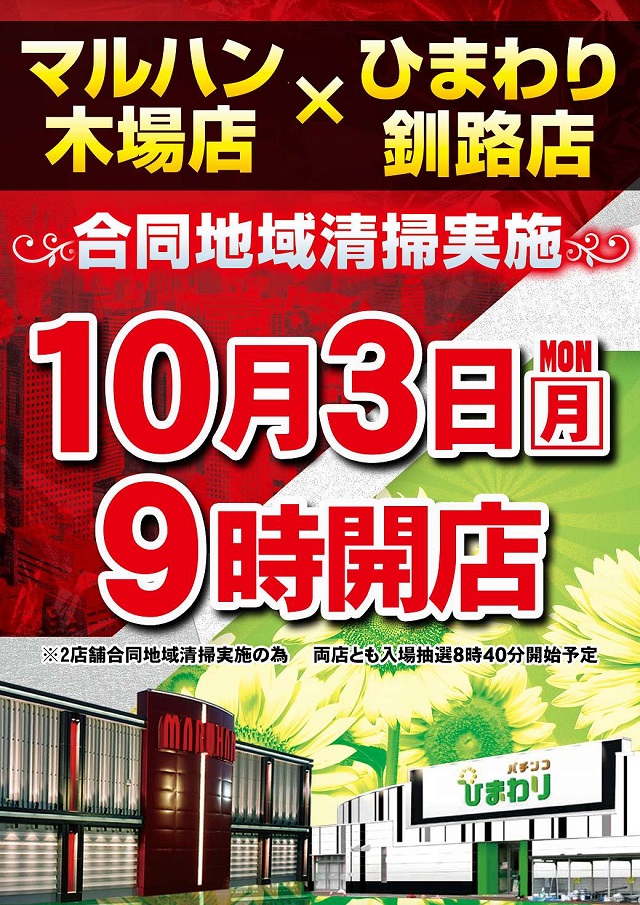 3日(月)朝9時開店×ひまわり様合同地域清掃