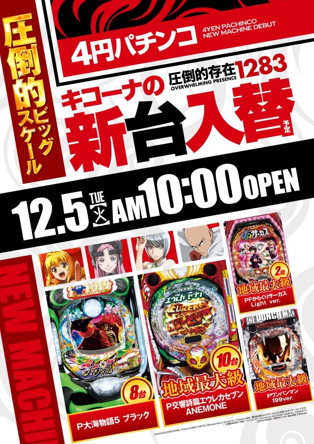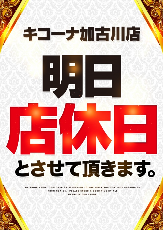 明日は新台準備の為、お休みいただきます。