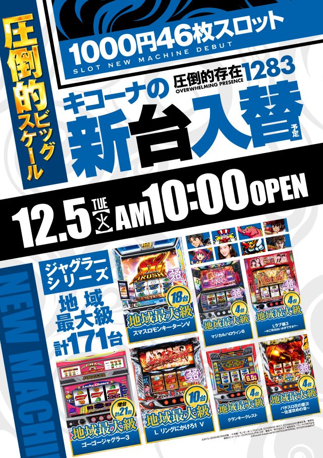 本日は新台準備の為、お休みいただきます。