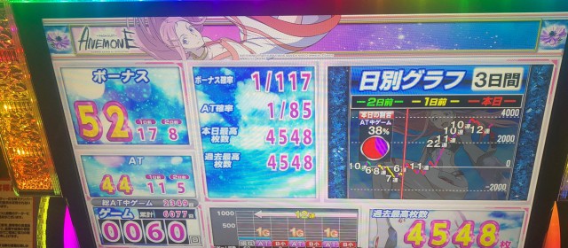 その他では『泡盛』『パチスロANEMONE 交響詩篇エウレカセブン HIーEVOLUTION』『Re:ゼロから始める異世界生活 Apex Vacation』などの出玉が目立ち、+5千枚以上の差枚数も珍しくない状況だった。