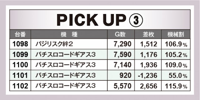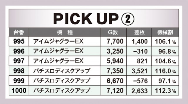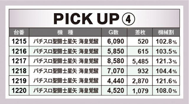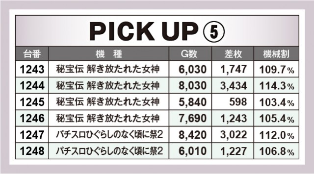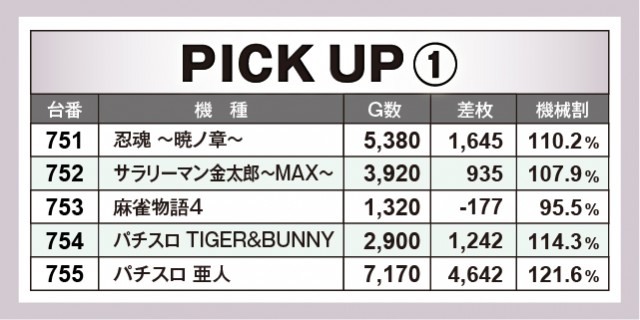 パチスロ全体では、優秀台、ピックアップ機種の健闘も報われず、トータルの差枚は大きくマイナスになってしまった。それでも、評価ptは18ptを獲得しており、盛り上がりは感じられた。次は差枚も満足の行く結果としたいところだ。