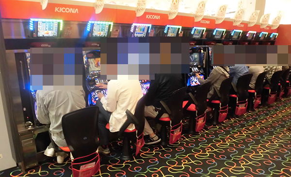 午後の20円パチスロでも、多くのプレイヤーが遊技を楽しんでいた。
