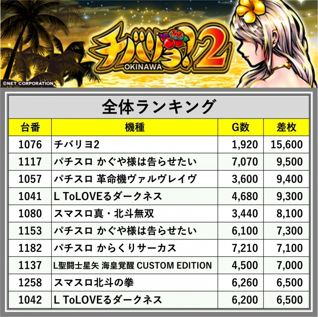 厳選された取材対象機種をはじめ、その他スロット全体から好記録が飛び出した!プレイヤーが楽しんだ1日を下記データにて振り返ってみて欲しい。
