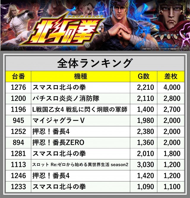 厳選された取材対象機種をはじめ、その他スロット全体から好記録が飛び出した!プレイヤーが楽しんだ1日を下記データにて振り返ってみて欲しい。