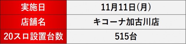 11月11日(月)キコーナ加古川店にて、DMMぱちタウンの新感覚取材「スロセレ」を実施。