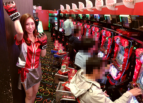 華やかな光景を目の当たりにし、パチンコ・パチスロの楽しさを再認識する岡田ゆうこちゃんでした☆