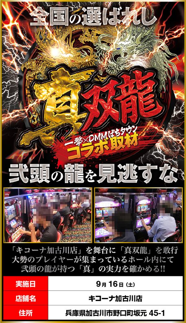「真双龍」の舞台となった「キコーナ加古川店」の様子をうかがうと、ホール全体が高稼働。