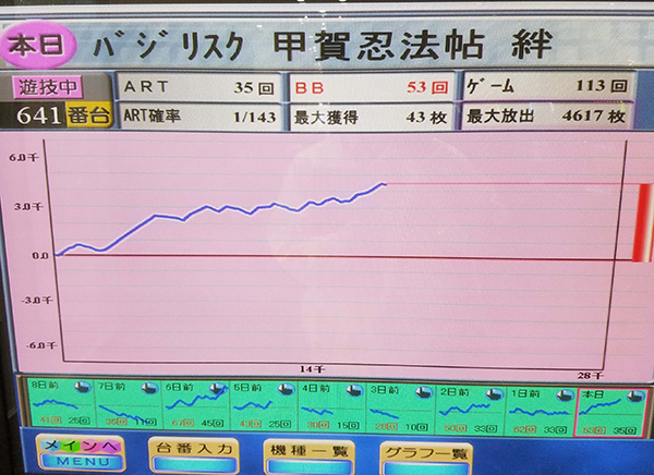 今回のアッパーは、【バジリスク~甲賀忍法帖~絆】641番台にて目撃された…