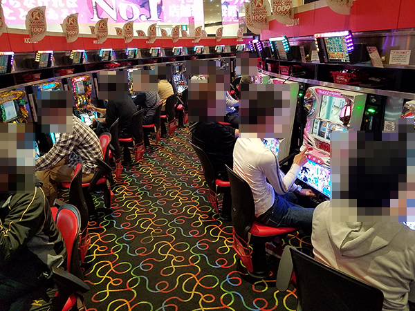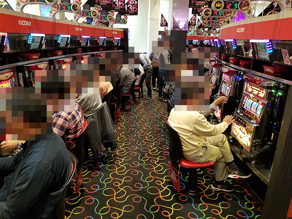 どのシマに目をむけてみても、うれしそうな表情で遊技を楽しんでいるプレイヤーが多数!