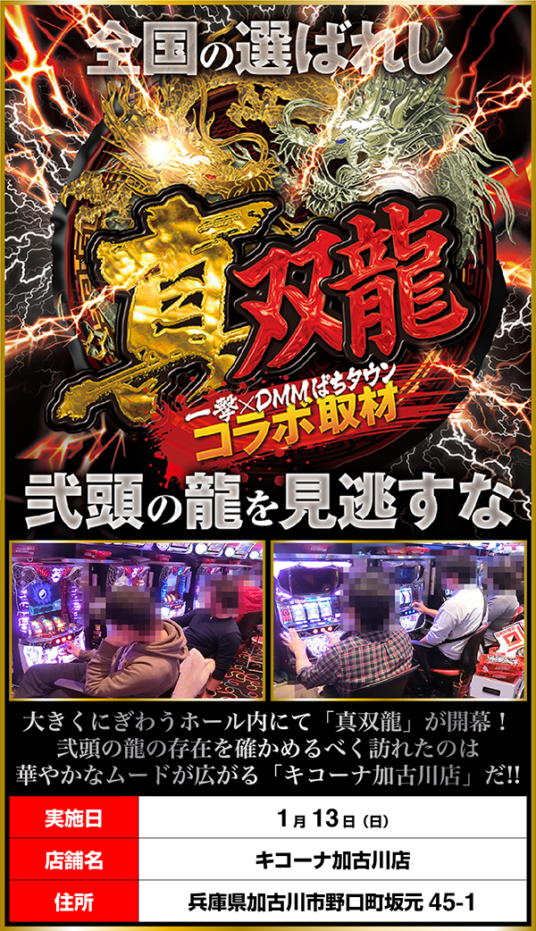 「真双龍」の舞台となったのは、白を基調とした外観も特徴的な「キコーナ加古川店」。