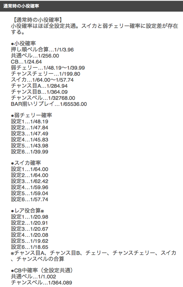 高設定ほど弱チェリーとスイカの確率が高い。