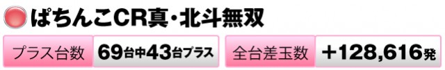 69台中なんと43台がプラスで、全台差玉数も+128,616発を記録。