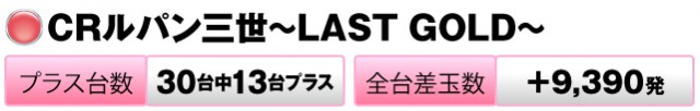 その他では、『CRルパン三世~LAST GOLD~』が、30台中13台がプラス、全台差玉数+9,390発を記録しており、こちらも20年以上続くロングセラーシリーズとして、変わらない実力をアピールしている。