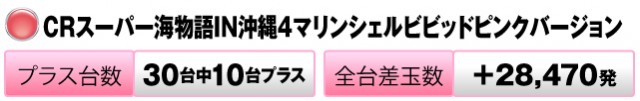 30台中10台がプラスで全台差玉数は+28,470発と、『海』シリーズファンの期待に応えている。