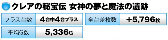 8台中7台がプラスで全台差枚数も+16,616枚をマークしており、英雄の誕生に一役買うこととなった。
