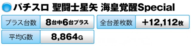 8台中6台がプラスで全台差枚数が+12,112枚。