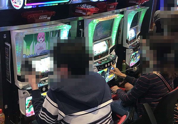 確認時は4台がフル稼働。パチンコとパチスロをあわせて1000台を超える大型店において、多くはない設置台数であるものの、台数以上に存在感が大きかった。