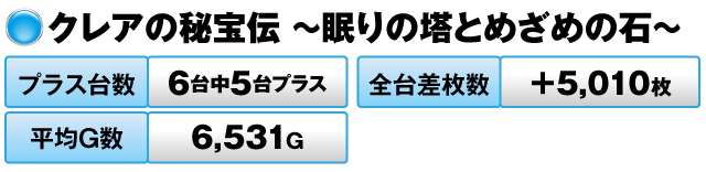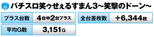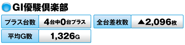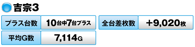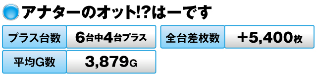 4台中3台がプラスで全台差枚数は+9,392枚だった。