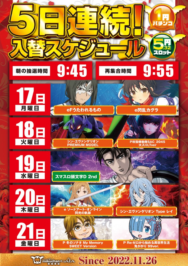 【周年月間】17日先行導入台稼働開始&☆5日間連続入替初日☆