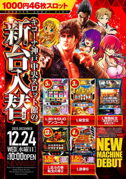 キコーナグループ神戸エリア店舗初のスロ専!大型駐車場完備!!