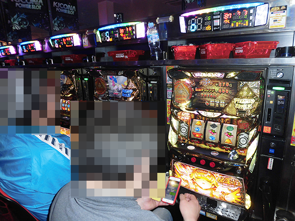 午後の20円パチスロでは、「バジリスク~甲賀忍法帖~絆」が朝イチから引き続き満席状態。ホール内でもトップクラスの稼働率の高さで、プレイヤー自身の手腕を発揮しているような姿も多くみられた。