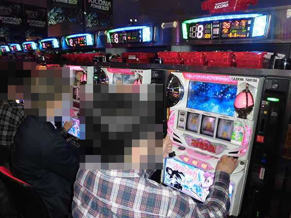 開店直後は、20円パチスロの「バジリスク~甲賀忍法帖~絆」や新台の「パチスロ偽物語」などの席がすぐに埋まっていた。