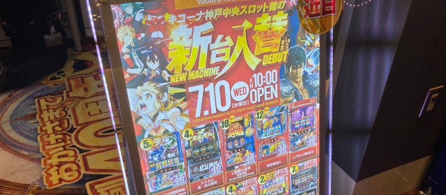 ちょうど1ヵ月前の2024年6月に「英雄のリアル」デビューを果たした「キコーナ神戸中央スロット館」。今回は2回目の取材だ。