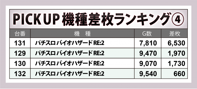 続いては4機種4台ずつでプラス台が目立ったスポットをチェック。