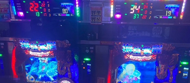 差枚数順に記していくと、『スマスロ ゴッドイーター リザレクション』では+16,900枚超・+7,600枚超が1台ずつ、『スマスロ北斗の拳』では+9,300枚弱・+6,000枚超・+5,500枚弱・+4,500枚超が1台ずつ、『L ToLOVEるダークネス』では+8,300枚超・+6,400枚弱が1台ずつ、『パチスロ バイオハザード RE:2』では+5,300枚弱・+3,400枚弱・+2,700枚弱が1台ずつ、『スマスロ真・北斗無双』では+5,100枚超・+3,600枚超が1台ずつと、+5,000枚オーバーが相次いだ。
