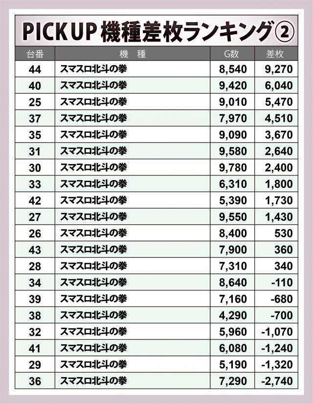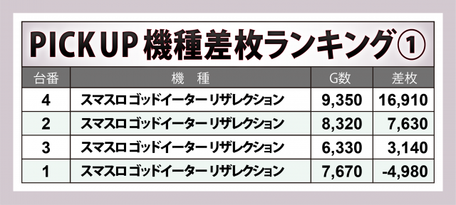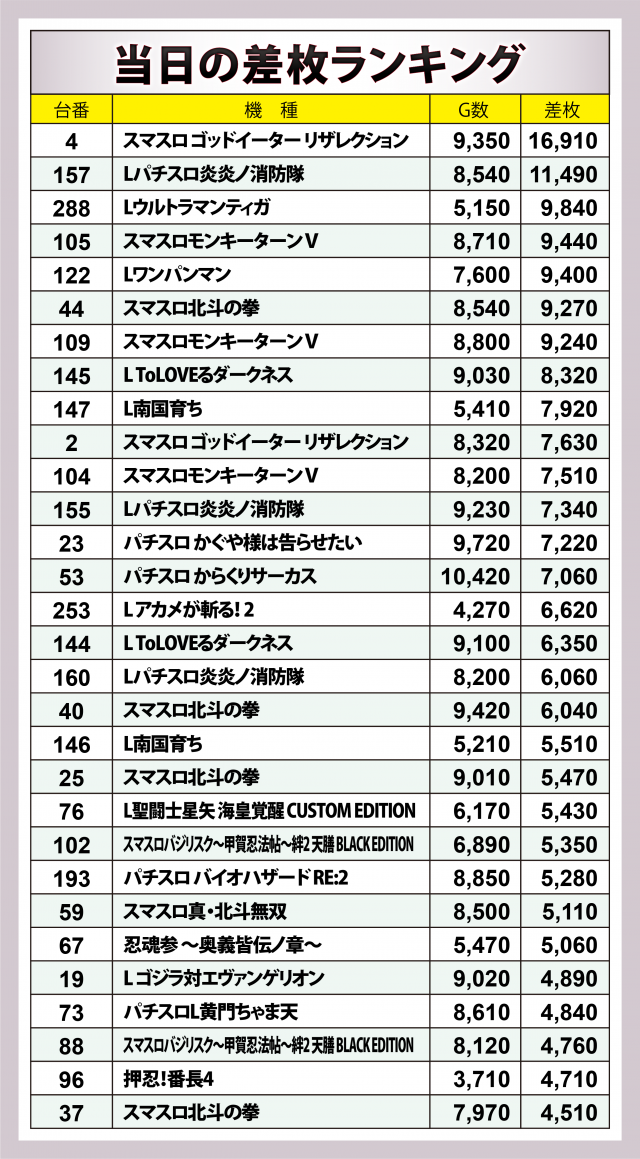 ※差枚数順に掲載しています。