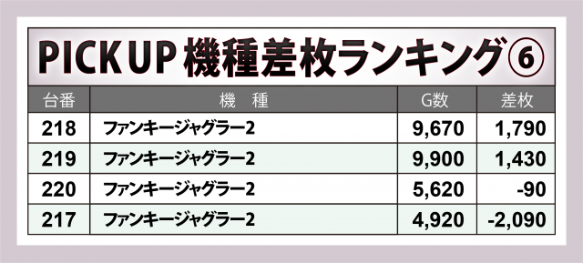 ここからはプラス台割合の高さと飛び抜けた好出玉が際立った6機種をクローズアップ。