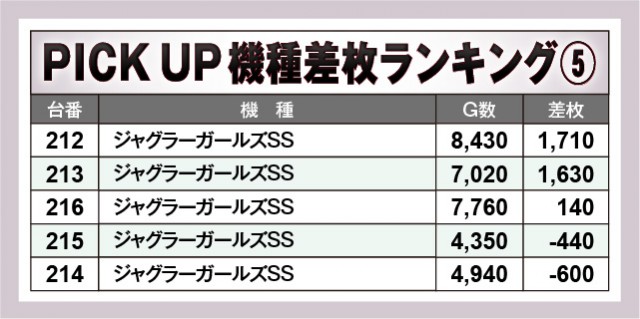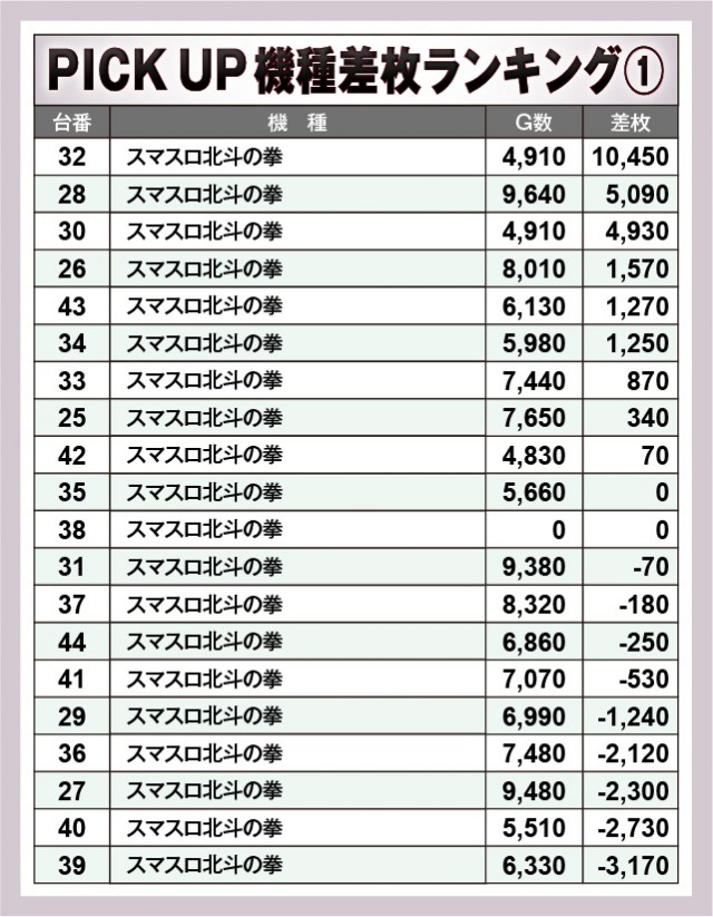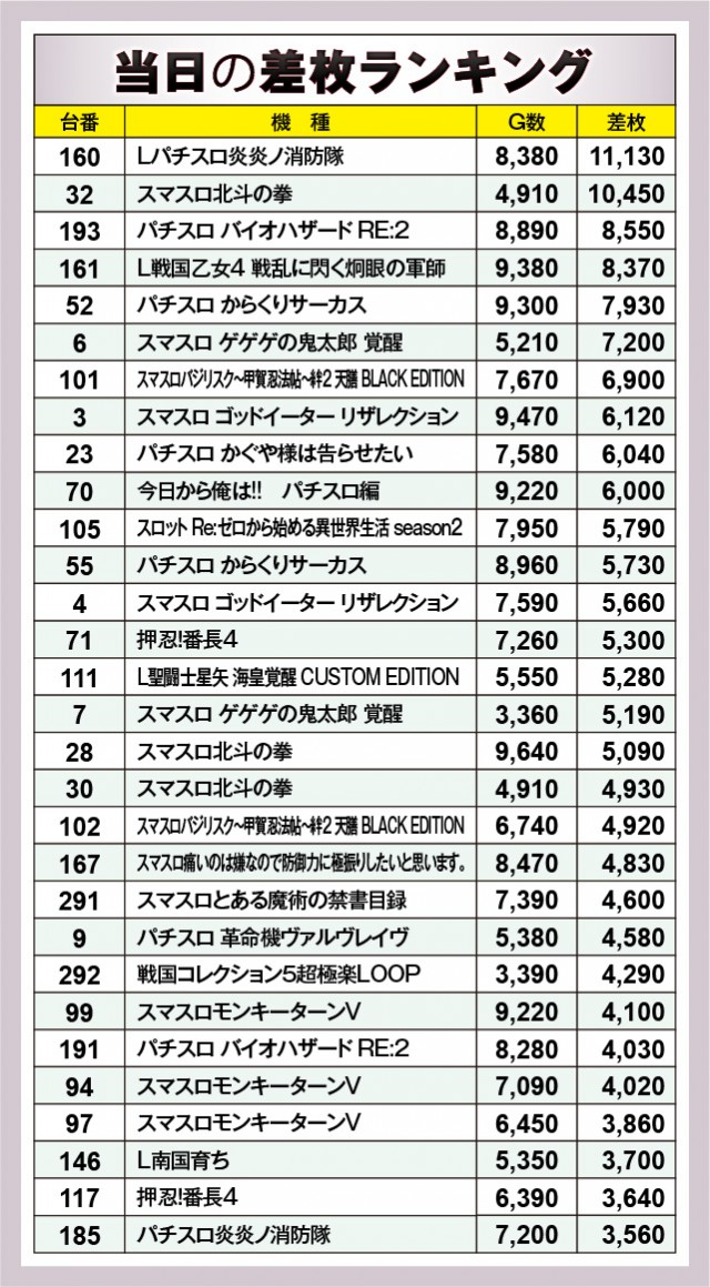※差枚数順に掲載しています。