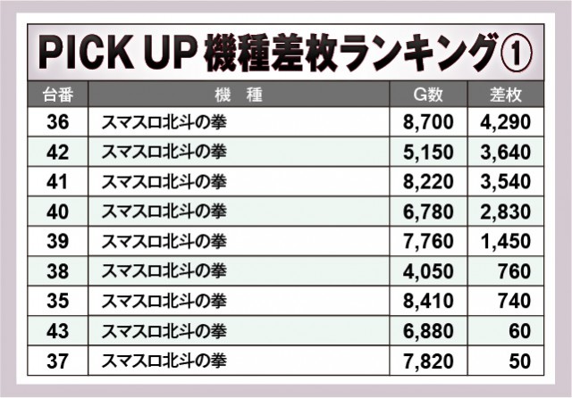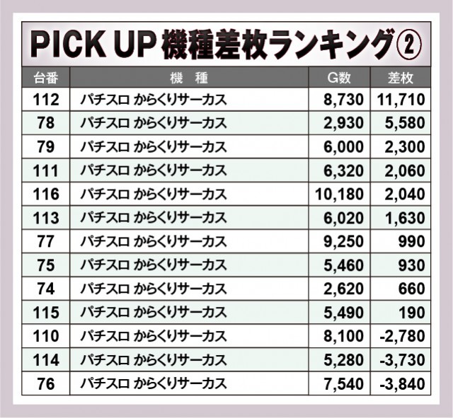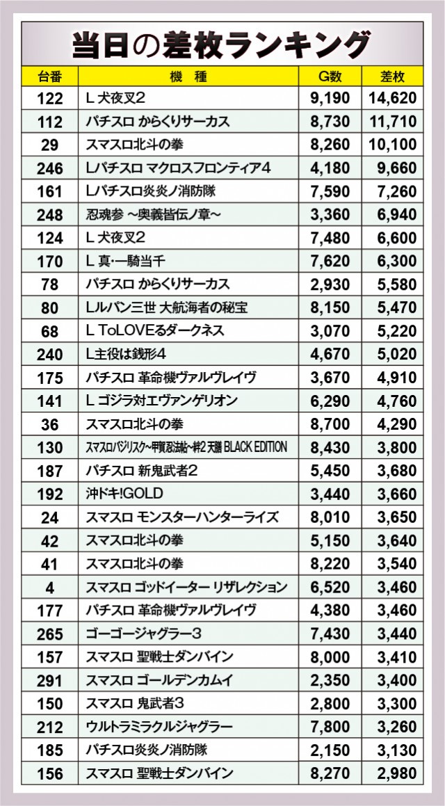 ※差枚数順に掲載しています。