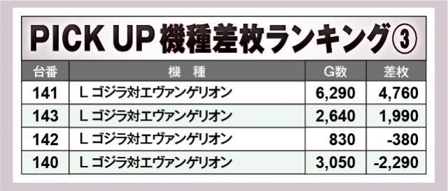 『スマスロ北斗の拳』『パチスロ からくりサーカス』の活躍は前述した通りで、やはり回転数に目を向けてもファンが手応えを感じていたのは間違いない。そして数多くの新台が登場するなか、『L ゴジラ対エヴァンゲリオン』も存在感を放っており、まだまだ現役であることを示している。また新台『ウルトラミラクルジャグラー』も大きなマイナスが見られず、回転数と差枚数が比例する展開を披露していたのも見逃せないポイントだ。