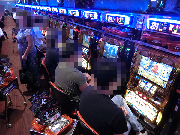 取材日となった7月16日の店内には、大勢のプレイヤーが集合。笑顔が多く、遊技を満喫している様子もうかがえた。