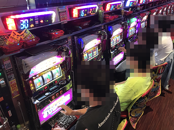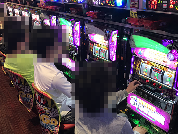 ホール内には、パチスロのおもしろさを味わうようにイキイキとレバーを叩いている姿が多数。人気を集めている機種もあり、いたるところから活気が伝わってきた。