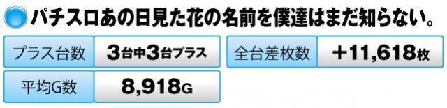 3台すべてがプラスで全台差枚数がは+11,618枚をマーク。